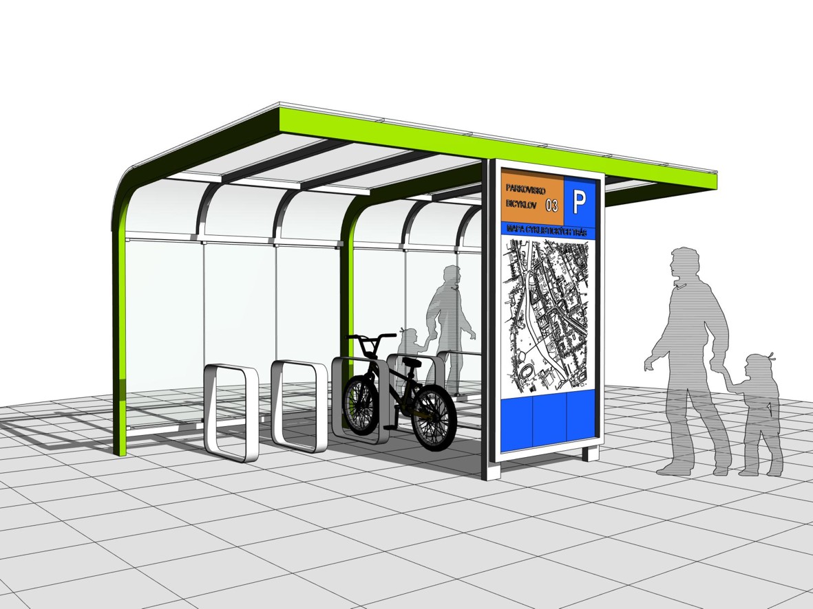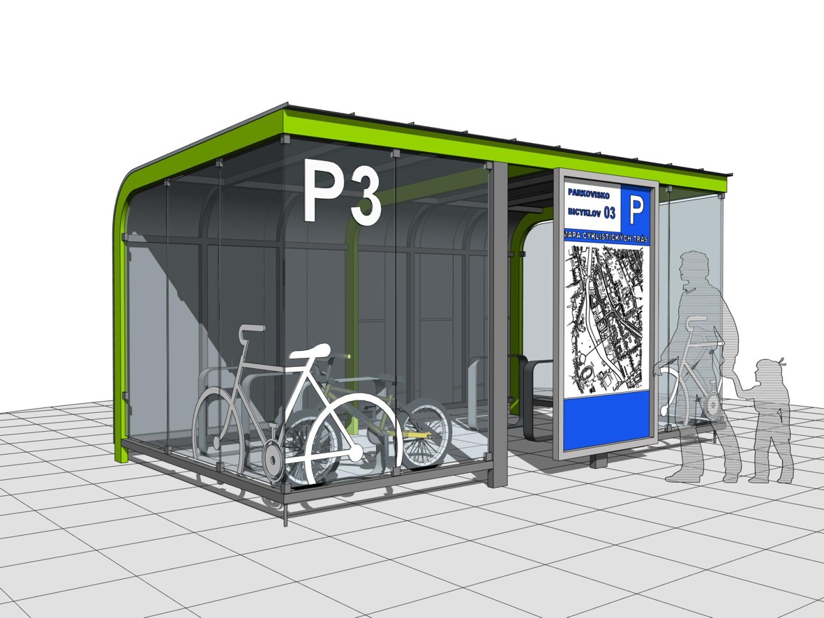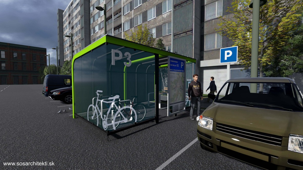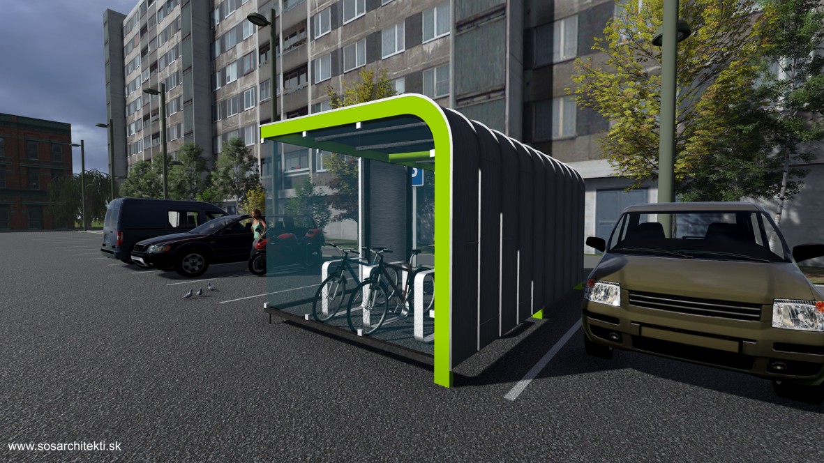 Cieľom návrhu bolo vytvoriť jednoduchú, identickú, vandaluvzdornú a estetickú formu krytého parkovacieho zariadenia pre bicykle (PARKOVACÍ BOX a PARKOVACÍ PRÍSTREŠOK), pod ktorým by bolo možné ich bezpečné a pohodlné parkovanie v zdrojových aj cieľových destináciach cyklodopravy. Súčasťou je aj návrh ergonomického parkovacieho stojana, ktorý bude umiestnený v parkovacích zariadeniach.