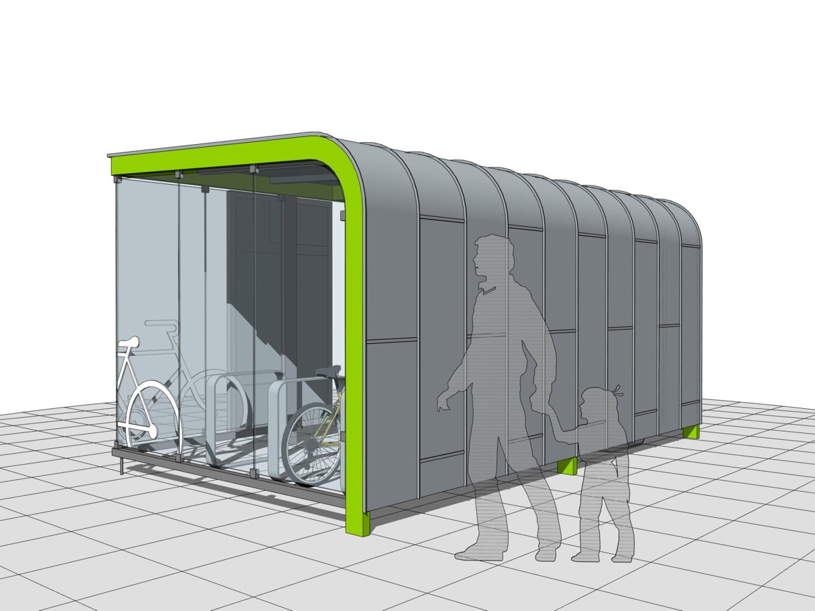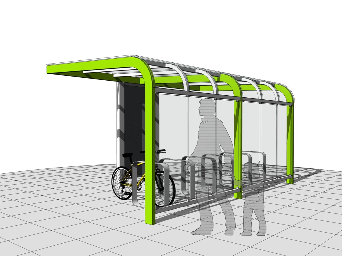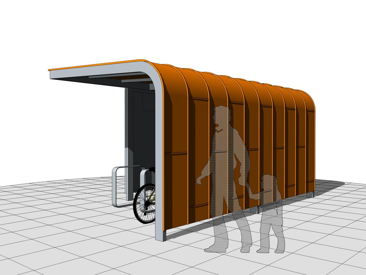 Parkovacie zariadenie je navrhované ako jednoduchá (tvarovo, funkčne, nákladovo, realizačne) forma odstavnej plochy pre bicykle. Dizajn je nadčasový (jednoduchý tvar s charakteristickým oblúkovým prepojením strechy a zadnej steny), tvarovo identický (stavba pre cyklistov na prvý pohľad), farebne identický (svieža zelená jemne reflexná farba s ekologickým nádychom), tvarovo a materiálovo prispôsobiteľný (vhodný do rôznych urbanistických lokalít s možnosťou zmeny opláštenia), s prvkami vandaluvzornosti a odolnosti voči poveternostným vplyvom (pevná konštrukcia, kvalitná povrchová úprava, solárne osvetlenie interiéru).