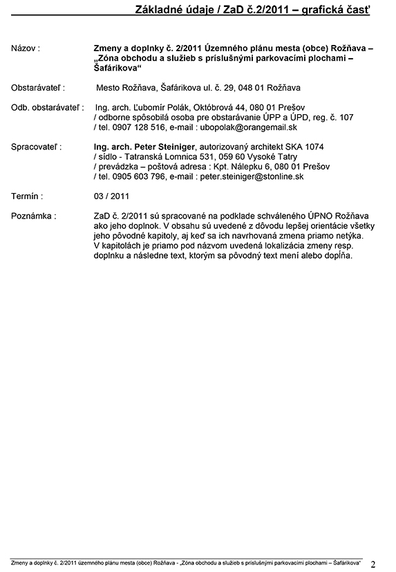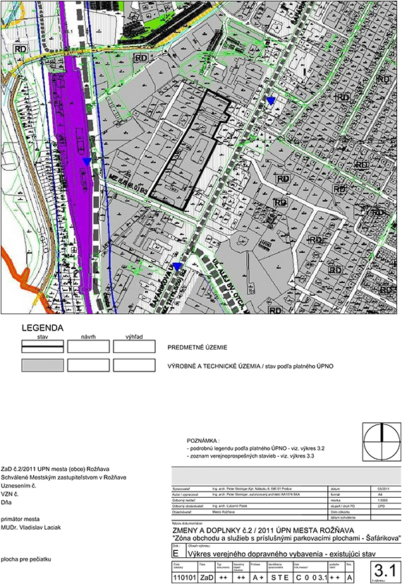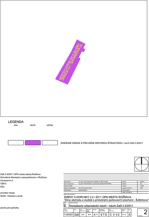 Zmeny a doplnky č.2/2011 ÚPN-O MESTA ROŽŇAVA, Zóna obchodu a služieb s príslušnými parkovacími plochami - Šafarikova.